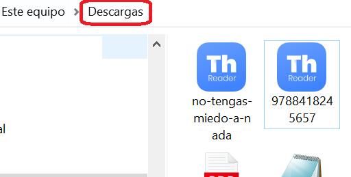 Si el archivo descargado no se abre automáticamente en Thorium y tiene la extensión .acsm, deberá abrirlo con Adobe Digital Editions.